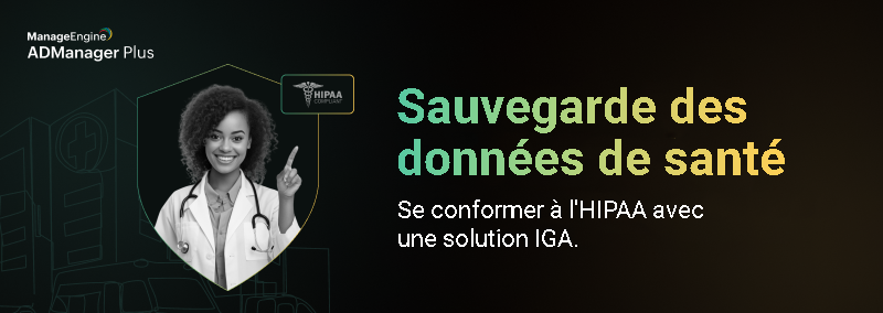 ADManager Plus, une solution IGA d'entreprise, aidera votre organisation à passer non seulement les mandats HIPAA, mais aussi d'autres exigences de conformité comme le RGPD, FISMA, SOX, PCI DSS, et plus encore. En plus de ses 200 rapports, la solution offre un rapport exclusif d'évaluation des risques d'identité pour les environnements AD et Microsoft 365 et fournit des mesures de remédiation pour atténuer les cyber-risques.