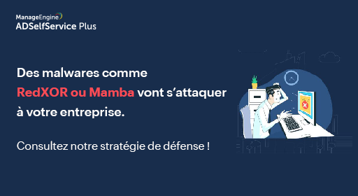 Vous voulez utiliser l'outil immédiatement ? Pas de problème. ADSelfService Plus est une solution intégrée de gestion des mots de passe en libre-service et d'authentification unique dotée de puissantes fonctionnalités pour protéger votre entreprise contre les malwares. Apprenez-en davantage sur ses caractéristiques.